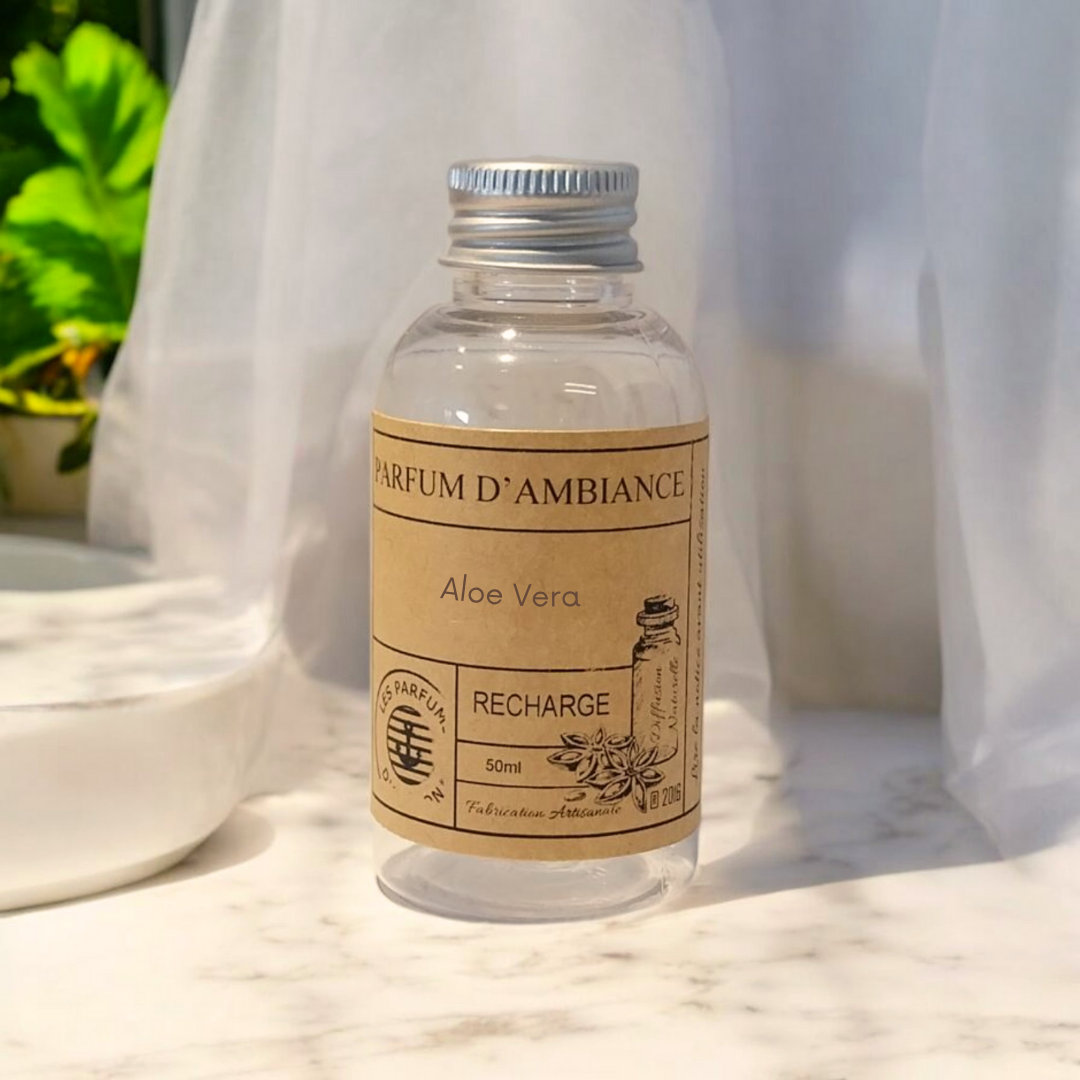Les recharges sont conditionnées dans une bouteille en PET de 50ml (disponibles également en 100ml et 200ml). Ces formats pratiques vous permettent de recharger facilement vos diffuseurs, compte-gouttes, vaporisateurs et de réduire votre empreinte environnementale.