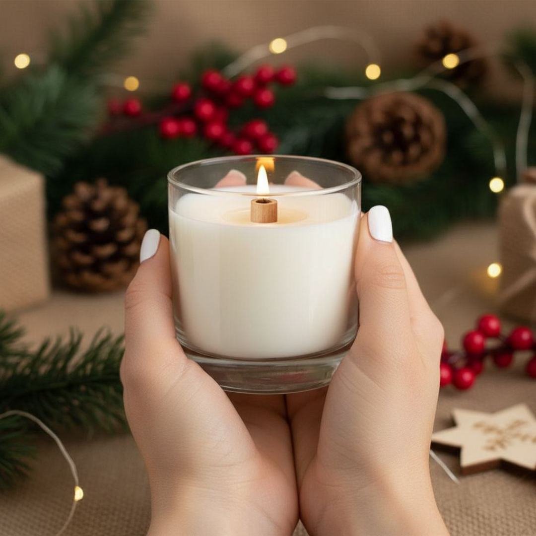Plongez dans l'atmosphère festive avec cette bougie de Noël, une toute dernière création olfactive conçue pour réchauffer votre intérieur et évoquer spécialement la magie des fêtes de fin d'année. Ses notes vertes, fruitées et épicées se marient harmonieusement pour créer une ambiance chaleureuse et invitante, parfaite pour les moments de détente au coin du feu ou les joyeuses réunions familiales.